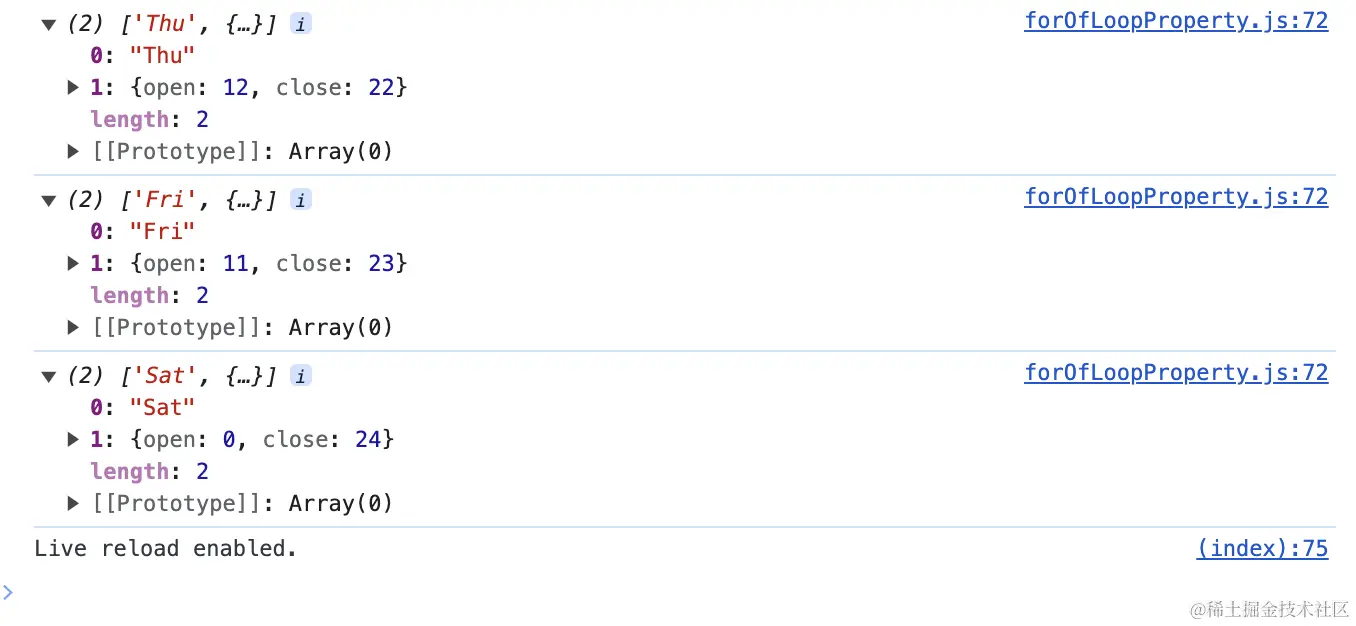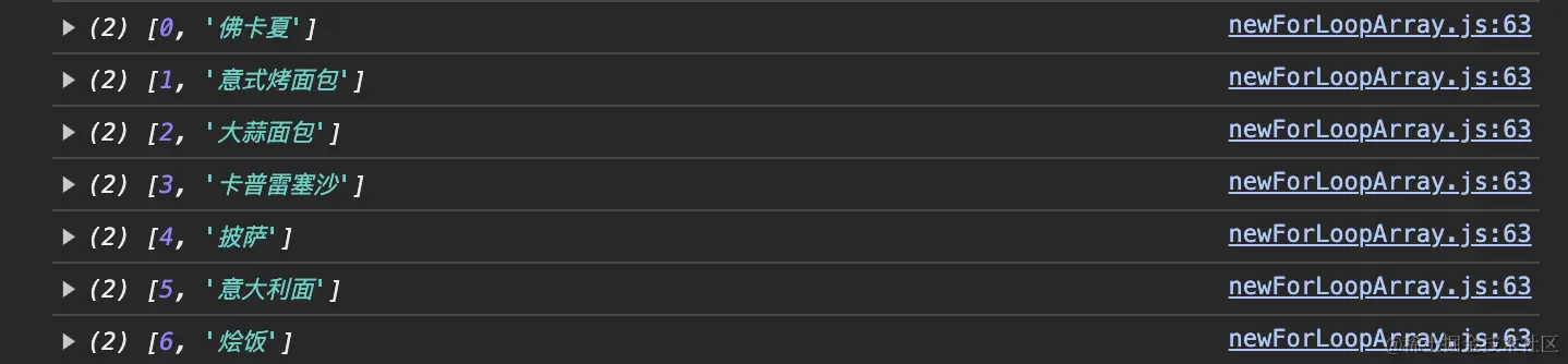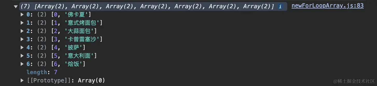 console.log([...menu.entries()]); // 探究👀entries()方法下的数组迭代器内部是什么样子