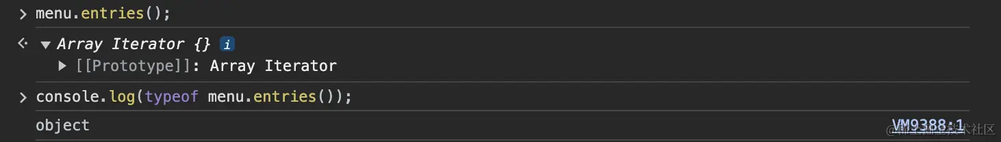 // 用console.log(menu.entries()); 会返回一个数组迭代器