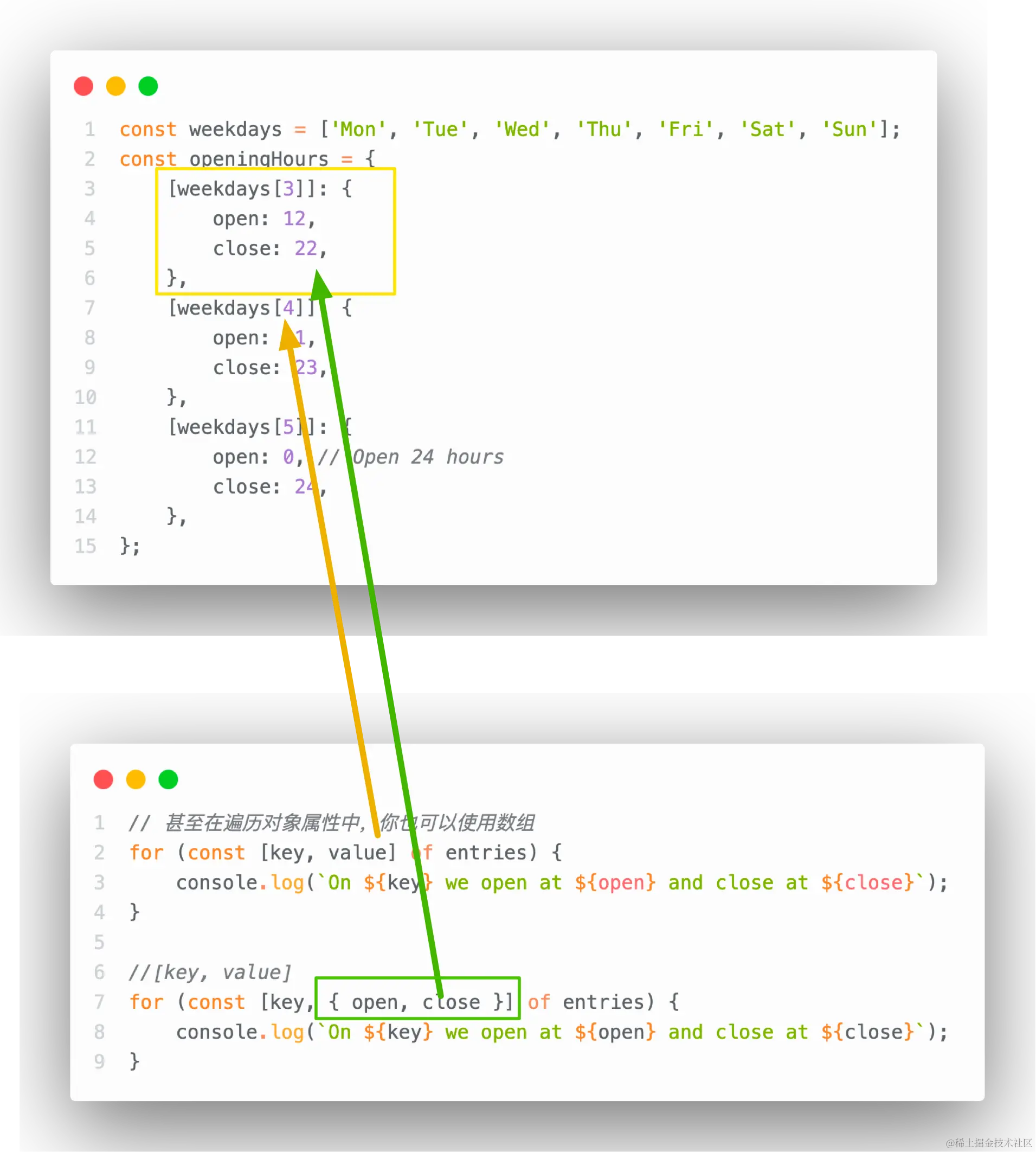 因此,现在你可以对通过entries()方法返回对象中的每一个属性元素进行控制,这种方法类似于使用for-of循环♻️来控制数组。
