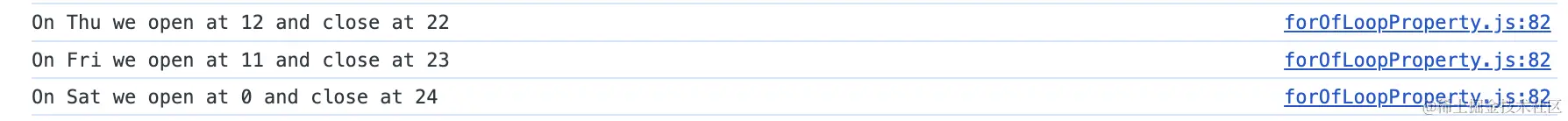 目前在restaurant对象中具有openingHours这个属性,通过for-of循环可以将openingHours属性内的对象和元素依次解构。