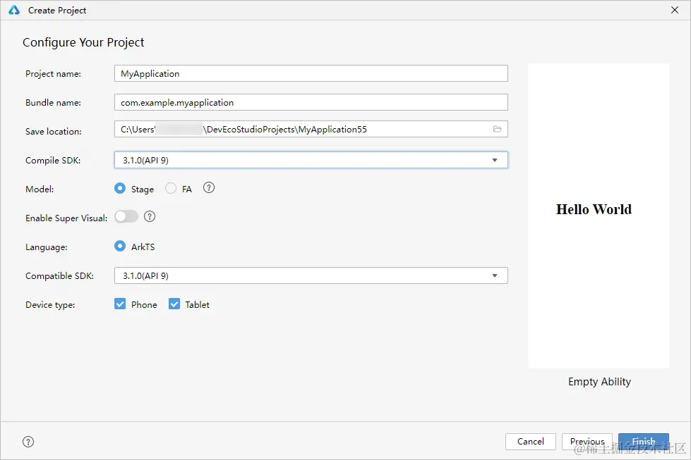 - 打开DevEco Studio,在欢迎页单击Create Project,创建一个新工程。