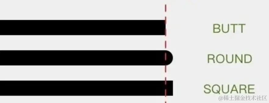 BUTT 平头、ROUND 圆头、SQUARE 方头,默认为 BUTT。