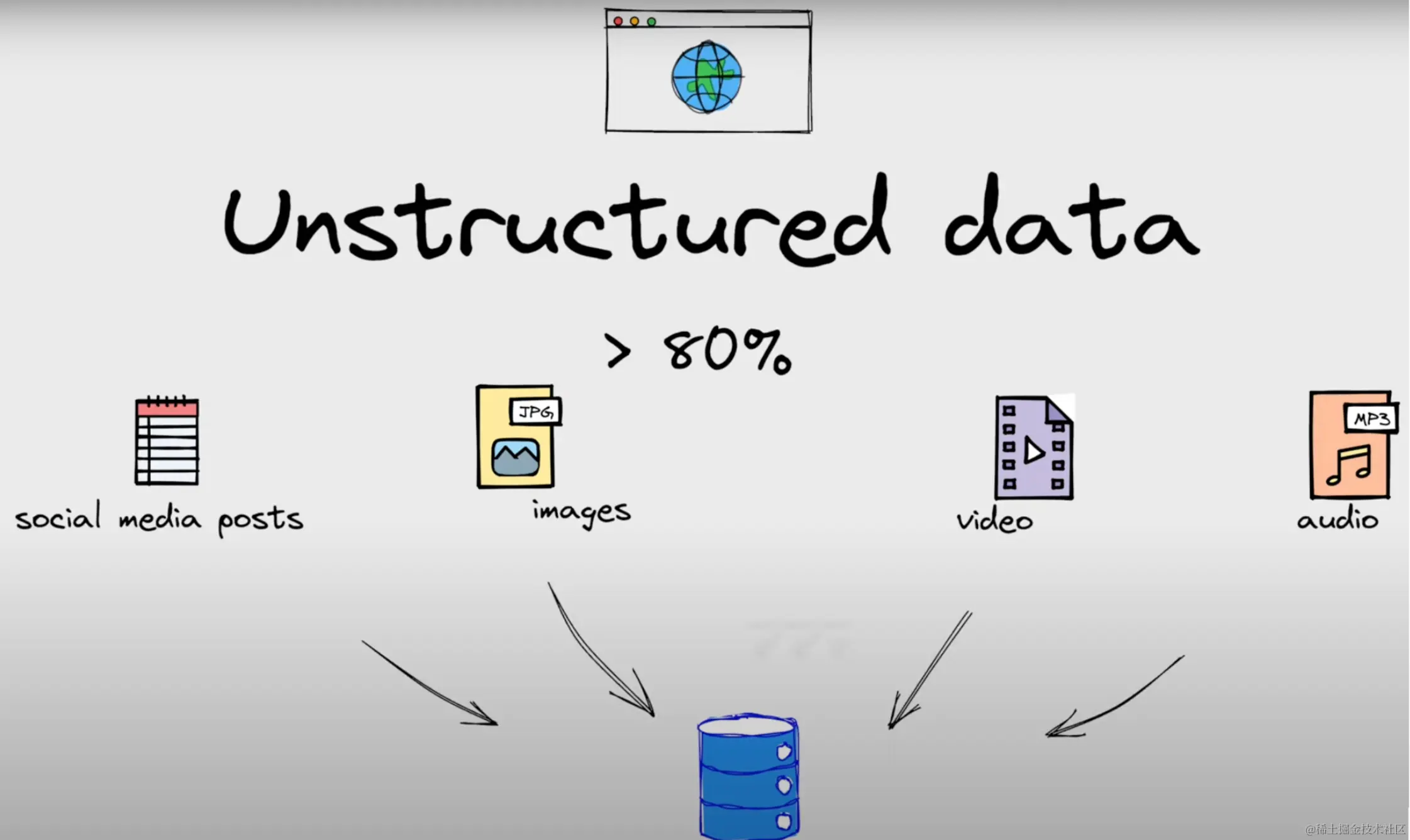 - 数据多样性:非结构化数据由多种数据类型组成,例如文本数据、图像或视频。 需要大型数据存储库(例如数据湖)将非结构化数据存储在一个地方。 非结构化数据固有的多样性也带来了链接挑战 —— 如何交叉引用图像、视频和文本?