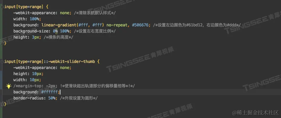 1、由于播放器的进度条是input设置,type为range属性来实现的,而当前样式为默认样式,则需要优化修改默认样式;