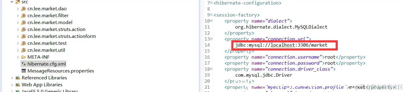 该项目是由SSH便写得其中得数据库配置文件在hibernate.cfg这个文件里面,