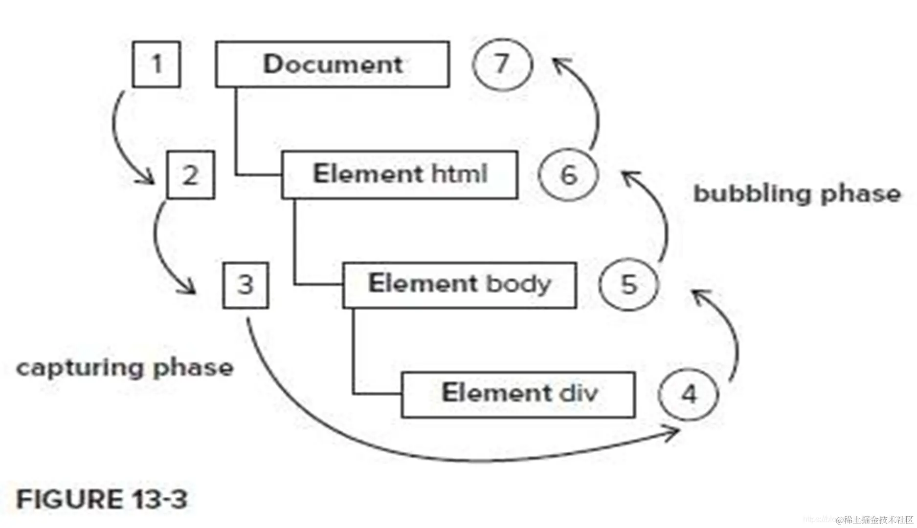 一个事件发生后,会在子元素和父元素之间传播(propagation)。这种传播分成三个阶段