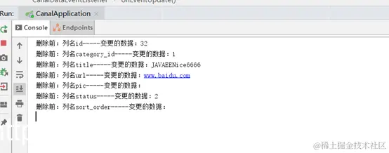 Canal微服务将修改记录到日志中