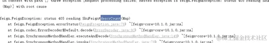 - 经过排查是缺少@RequestParam注解这个错误很麻烦,因为Feign得客户端得扫描包也开启了,就是识别不到,api都正常对接,这个异常还有其他得问题就是SkuFeig里面得方法得名字和我要调用得方法得名字不一样,导致Feign一直找不到,建议按住ctrl看能跳过去不能,因为远程调用还是SSM拿一套,名字很容易搞混,后来我发现名字不一样,那个feig,直接调用了Service导致一直读取失败,但是IDEA本身编译没有错误,程序一运行里面出错