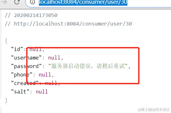 这个里面需要注意的时被熔断的方法的方法名和参数列表要和熔断方法保持完全一致,熔断才会生效,所以控制器对应的注解要加上