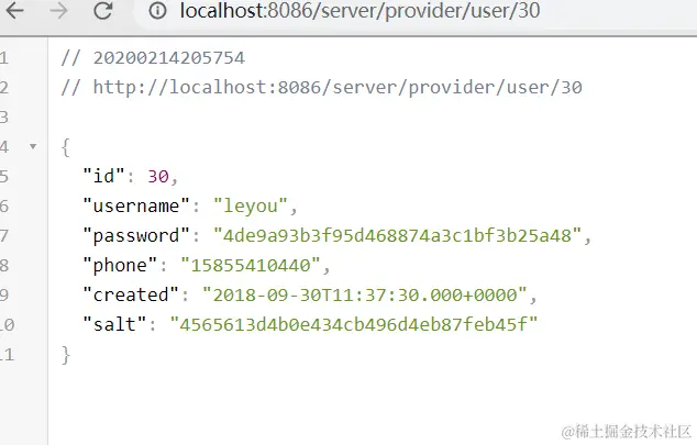 return restTemplate.getForObject("http://server-provider/provider/user/"+id,String.class);