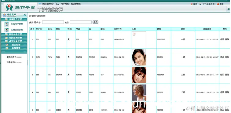 1:编辑系统用户信息:添加、编辑用户信息,包括发布者和管理员,以列表的形式显示; 2:编辑网站留言信息:以列表的形式显示网站留言信息,并可对其进行删除等编辑操作; 3:数据备份:不定期进行系统数据备份,以防万一。