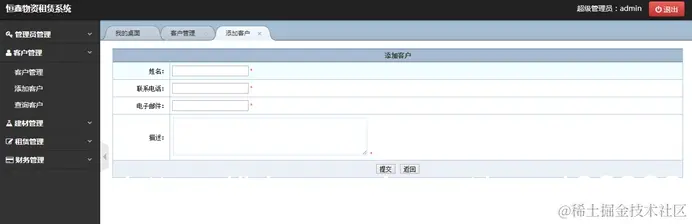 提供了一个方便快捷的物资管理系统,方便出租物资的管理。