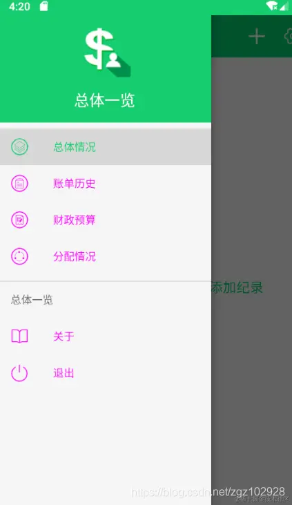 个人理财管理系统是基于Android系统开发的移动应用程序。它主要是为了满足人们在快节奏的生活中随时记录其收入和支出的需求。与传统的簿记方法相比,个人财务管理系统体现了其便利性,安全性和可扩展性。该系统使用 AndroidStudio开发人员工具作为开发工具,并使用SQLite作为数据库。系统功能包括:用户帐户注册,用户切换,用户名和密码修改,帐户删除,收入信息的添加和删除,支出信息的添加和删除,备忘录信息的添加和删除,收入类型的添加和删除,支出类型的添加和删除,收入信息统计类别,支出信息类别统计,总收支统计,数据恢复,卸载等。该系统具有简单明了的界面功能,方便易用的功能,易于使用的操作等