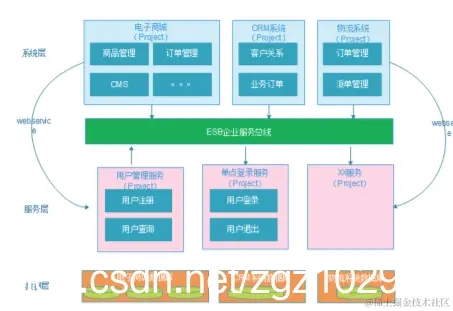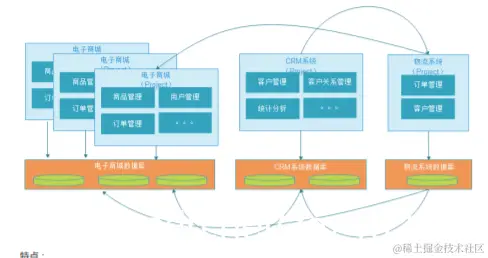 特点: 1、基于SOA的架构思想,将重复公用的功能抽取为组件,以服务的方式向各各系统提供服务。 2、各各系 统与服务之间采用webservice、rpc等方式进行通信。 3、ESB企业服务总线作为系统与服务之间通信的桥梁。 优 点: 1、将重复的功能抽取为服务,提高开发效率,提高系统的可重用性、可维护性。 2、可以针对不同服务的特 点按需伸缩。 3、采用ESB减少系统中的接口耦合。 缺点: 1、系统与服务的界限模糊,会导致抽取的服务的粒度 过大,系统与服务之间耦合性高。 2、虽然使用了ESB,但是服务的接口协议不固定,种类繁多,不利于系统维 护。