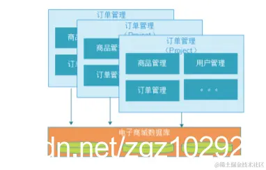 2.1.1 单体架构 Web应用程序发展的早期,大部分web工程师将所有的功能模块打包到一起并放在一个web容器中运行,所有功能 模块使用同一个数据库。 下图是一个单体架构的电商系统: