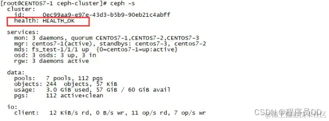 devtmpfs 1.9G 0 1.9G 0% /devtmpfs 1.9G 0 1.9G 0% /dev/shmtmpfs 1.9G 20M 1.9G 2% /runtmpfs 1.9G 0 1.9G 0% /sys/fs/cgroup/dev/sda1 197M 167M 31M 85% /boottmpfs 378M 0 378M 0% /run/user/0tmpfs 1.9G 24K 1.9G 1% /var/lib/ceph/osd/ceph-0ceph-fuse 27G 0 27G 0% /usr/local/cephfs_directorytmpfs 378M 0 378M 0% /run/user/1000/usr/local/cephfs_directory目录已成功挂载。