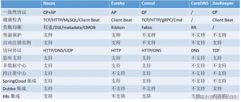 - Nacos与其他主流组件的横纵对比