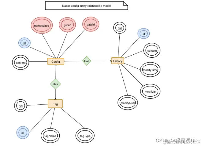 - 配置领域模型:主要两个实体, 一个是配置变更历史, 一个是服务标签, 通过ID关联 。