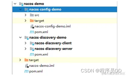 nacos-demo : 父级工程, 管理依赖。