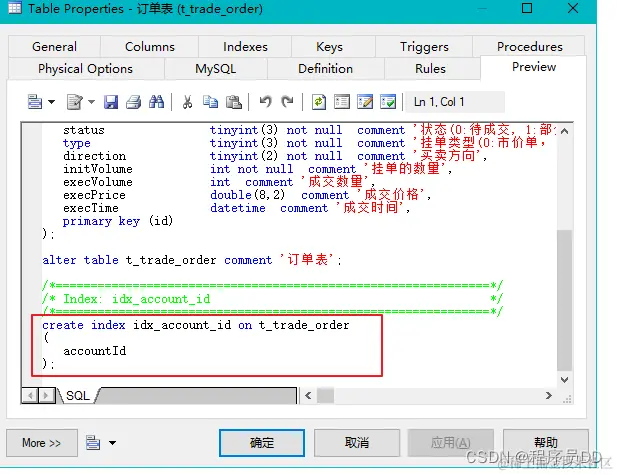 1.如果没有特殊情况,建议选择InnoDB引擎2.每个表都应该有主键,可选择自增字段,或长整型字段。例外情况,如果有多个字段可以组成唯一, 并且需要频繁查询的, 那么可以采用复合主键,比如用户编号+交易商编号做为复合主键,因为可以确保不产生重复数据, 同时节省空间。3.(不做强制要求)尽量将字段设置为NOT NULL。因为NULL值的存储需要额外的空间,且会导致比较运算更为复杂,会使得优化器更难以优化sql。空值是不占用空间, 但NULL列需要占用一个额外字节。4.使用更短小的列,比如整型列。整型列的执行速度往往更快。5.存储精确浮点数必须使用DECIMAL代替float和double。6.建议使用unsigned类型存储非负值7.建议使用 int unsigned存储ipv48.整型定义中不添加显示长度的值,使用int,而不是int(4)9.尽可能不要使用text,blob类型10.varchar(n) n表示字符数而不是字节数,比如varchar(255)最大可存储255个汉字,需根据实际字符长度选择n的值。11.字符集建议选择utf-812.存储年时使用year类型13.存储日期时使用date类型14.存储时间时,建议使用timestamp类型,因为timestamp使用的是4字节,datetime使用的是8字节。15.不要在数据库中使用varbinary或blob存储图片及文件,mysql 并不适合大量存储这类型文件16.join 操作的字段,在不同表中的类型及命名要一致17.如果更改表结构会影响性能,需要找DBA、表设计人员进行联合评审。