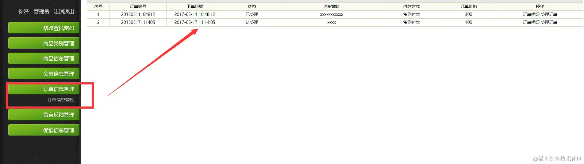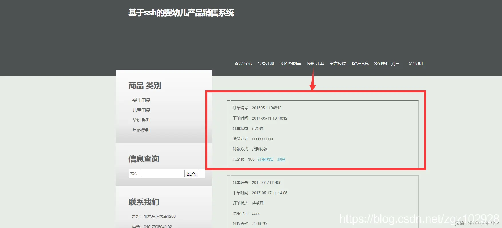 |--订单信息管理 主要实现会员订单的查询和处理功能