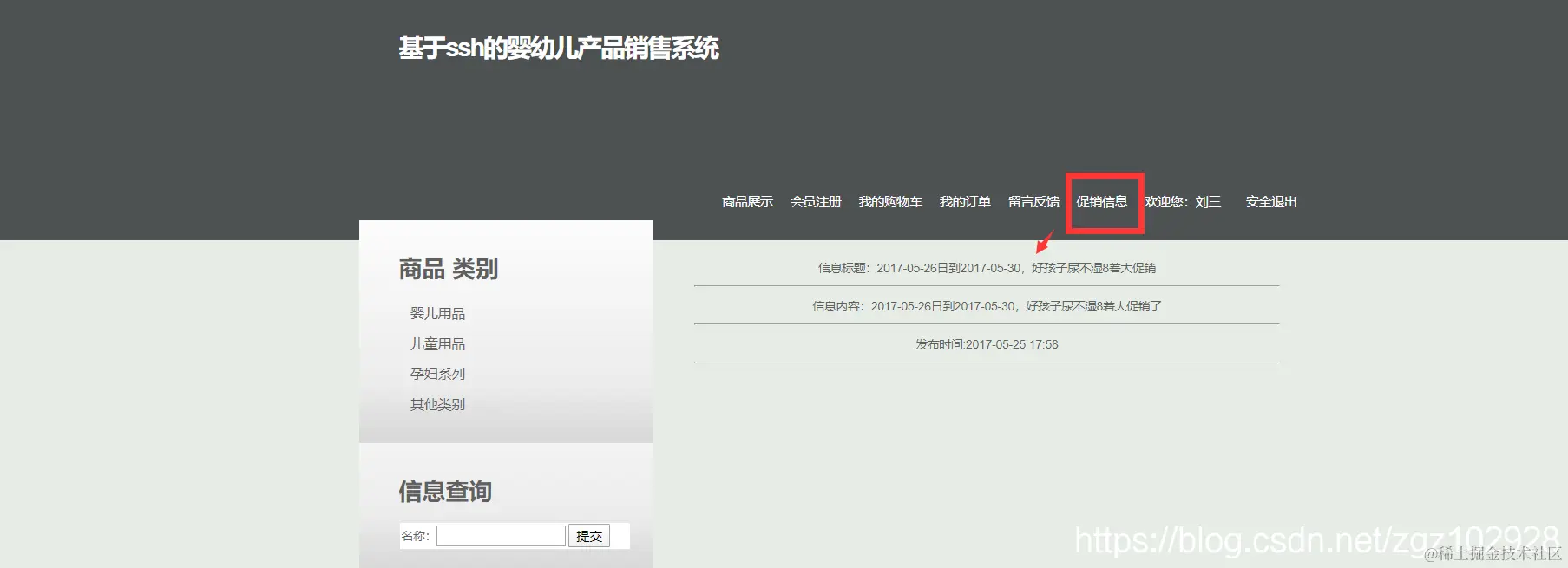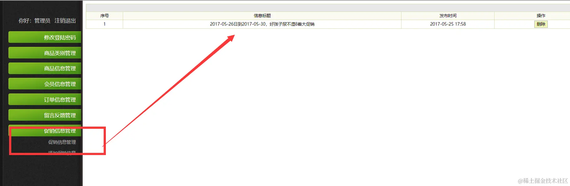 |--促销信息管理 主要实现促销信息的查询,添加,删除功能