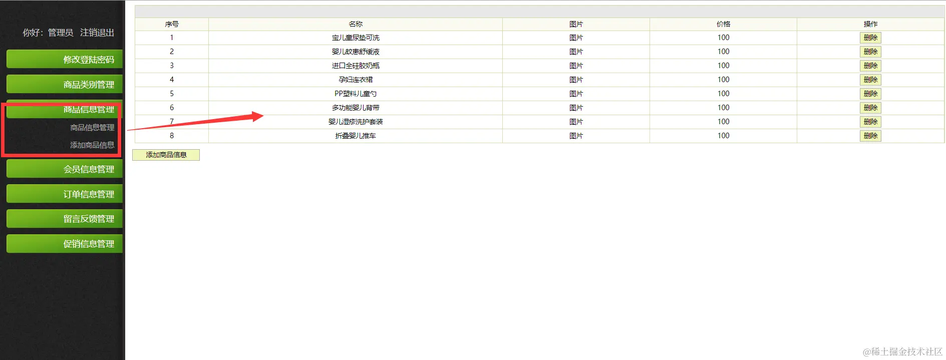 |--商品信息管理 主要实现商品信息的添加,修改,删除,查询功能