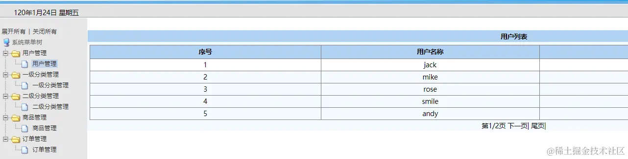 用户管理功能:可以查询所有用户,修改用户,删除用户