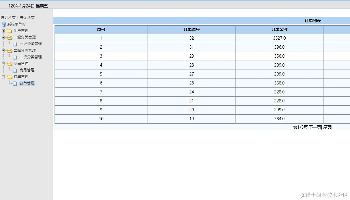 一级分类管理功能:可以查询所有一级分类,添加新的一级分类,删除已有的分类