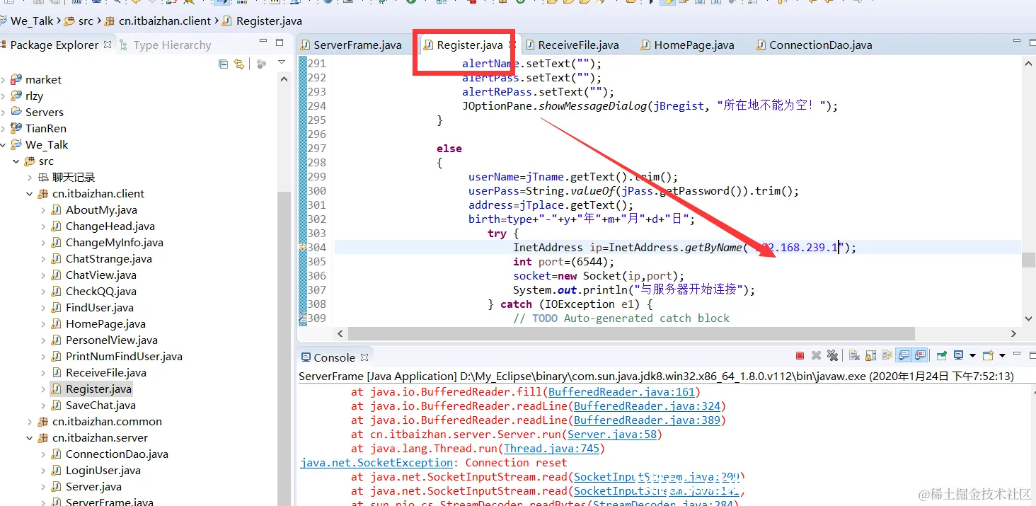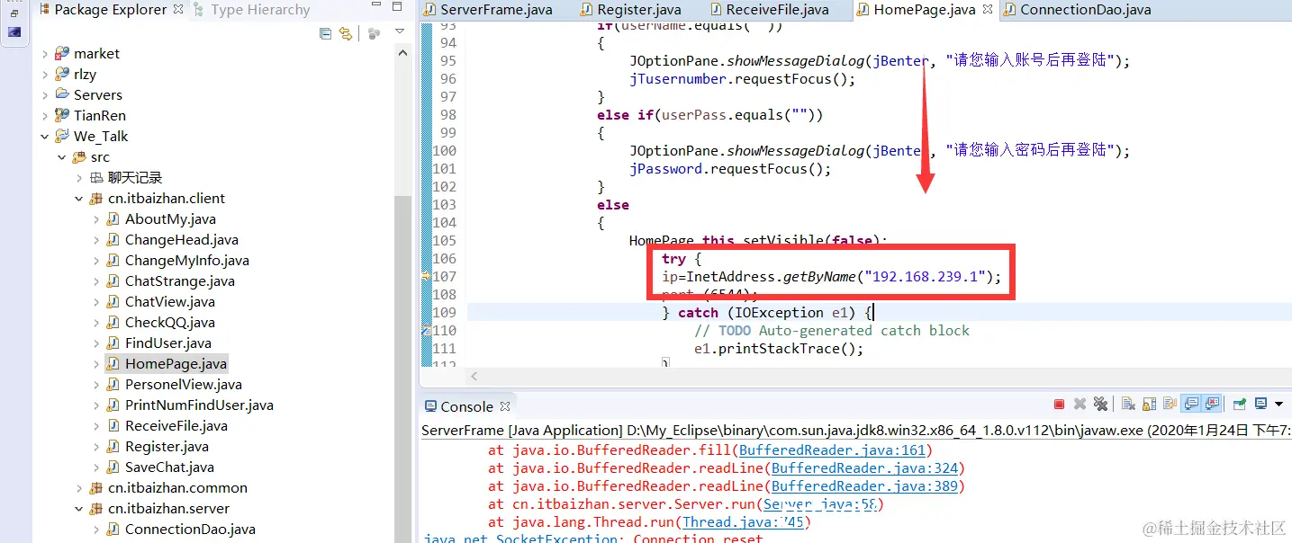 在启动Client之前一定要把Clinent要连接的IP地址进行修改,因为本客户端时基于Socket连接的,如果IP地址没变的话,会出现连接失败,