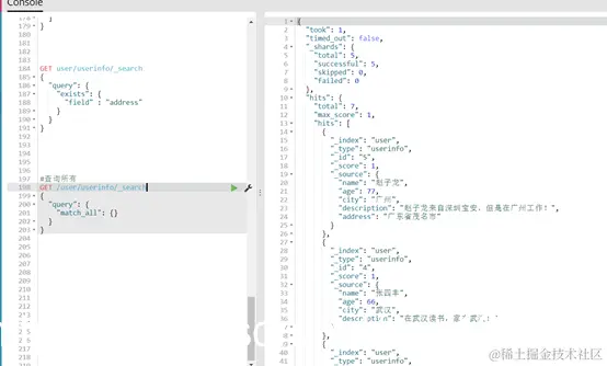 下面就是一些DSL语句的测试,这个之前做项目的时候中文识别有问题,推荐有火狐浏览器,这个语句基本就不会出现什么问题
