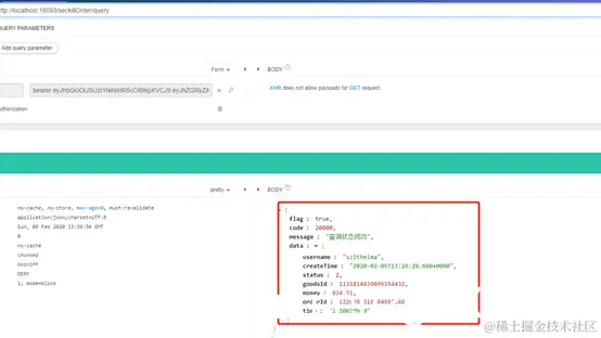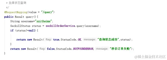 下面这个时查询秒杀成功之后的状态: