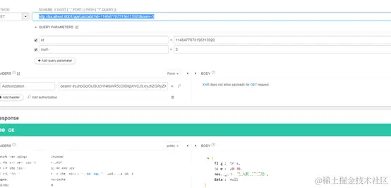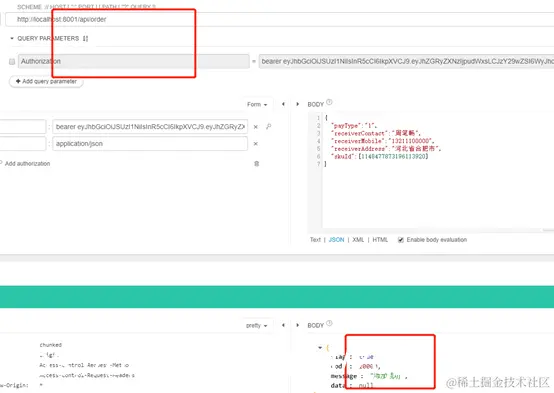 登录成功之后就可以试试查看用户地址整个url可用不可用同样也是Get请求,讲令牌前面加上bearer+空格+令牌,放到请求头中,这个时候