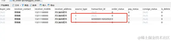 数据库中订单的状态: