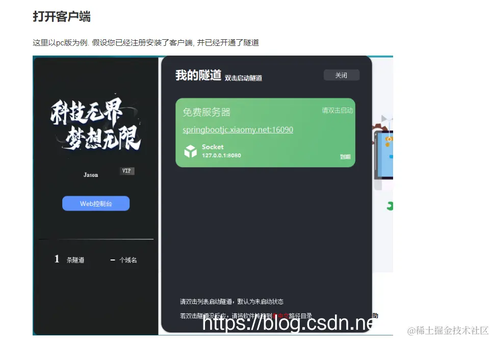 这个内网穿透的时候要带上端口号,他这个默认不给端口在启动工具里面有端口号