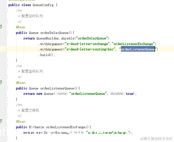 延时队列的创建和配置信息:
