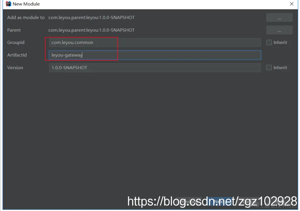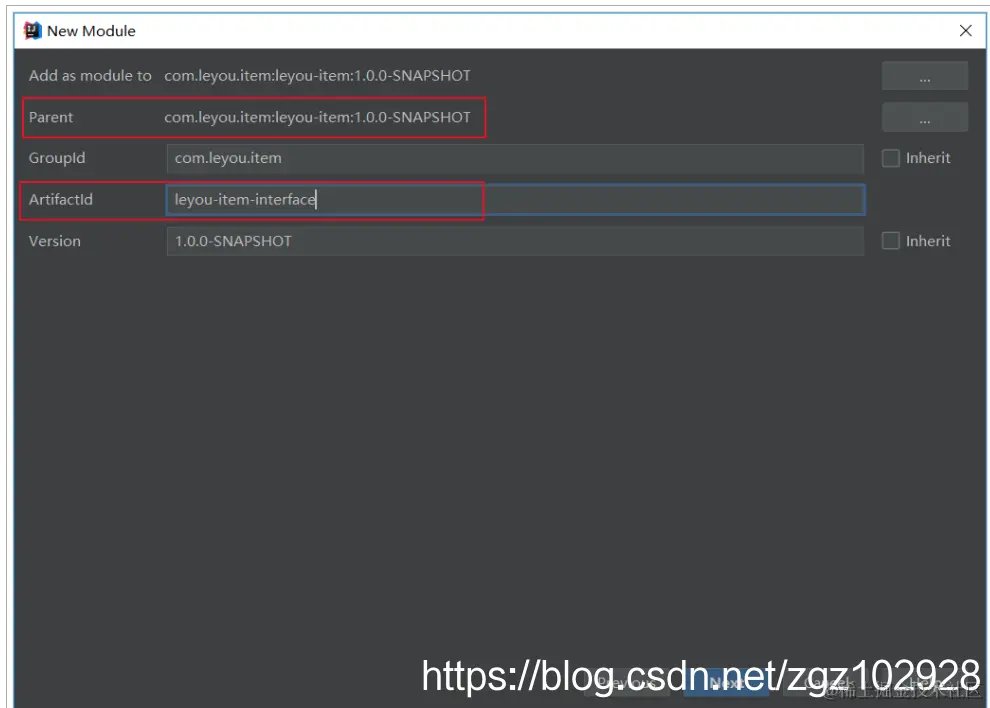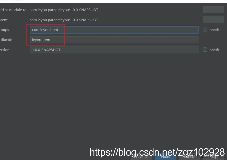 与leyou-item-interface类似,我们选择在leyou-item上右键,新建module,然后填写项目信息: