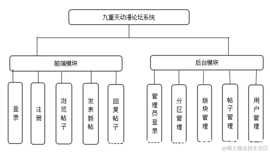 动漫论坛项目主要用于实现动漫爱好者的互相交流,基本功能包括:注册用户、登录、浏览帖子、发布新帖、回复帖子、等。本系统结构如下: