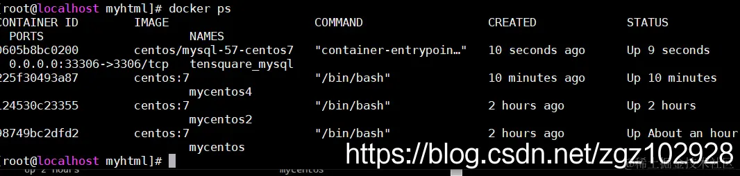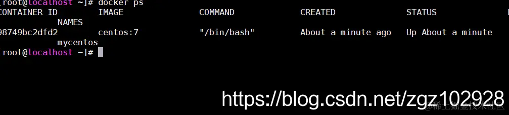 这时我们通过ps命令查看,发现可以看到启动的容器,状态为启动状态