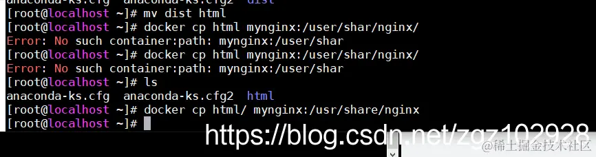 如果我们需要将文件拷贝到容器内可以使用cp命令