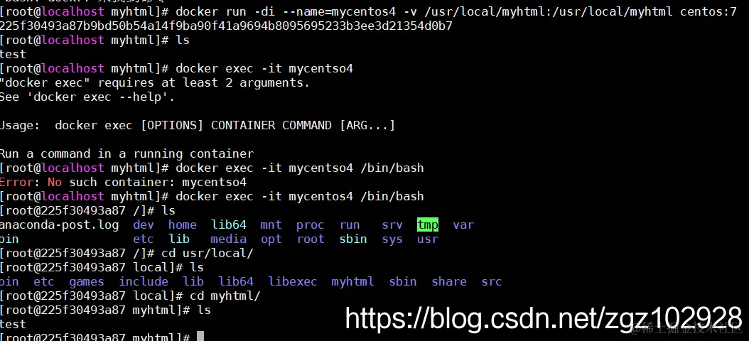 docker run -di -v /usr/local/myhtml:/usr/local/myhtml --name=mycentos3 centos:7