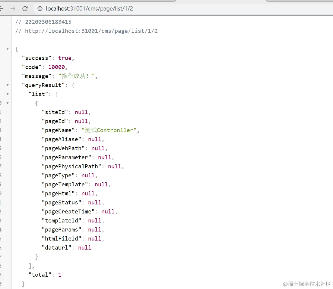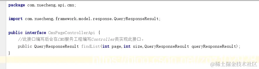 //此接口编写后会在CMS服务工程编写Controller类实现此接口。页面查询