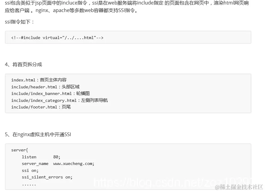 2、页面拆出来怎么样通过web服务浏览呢? 使用web服务(例如nginx)的SSI技术,将多个子页面合并渲染输出。