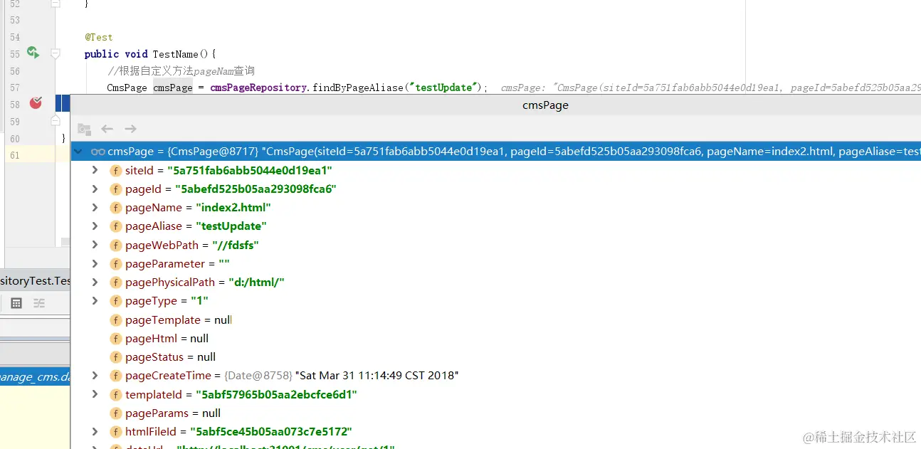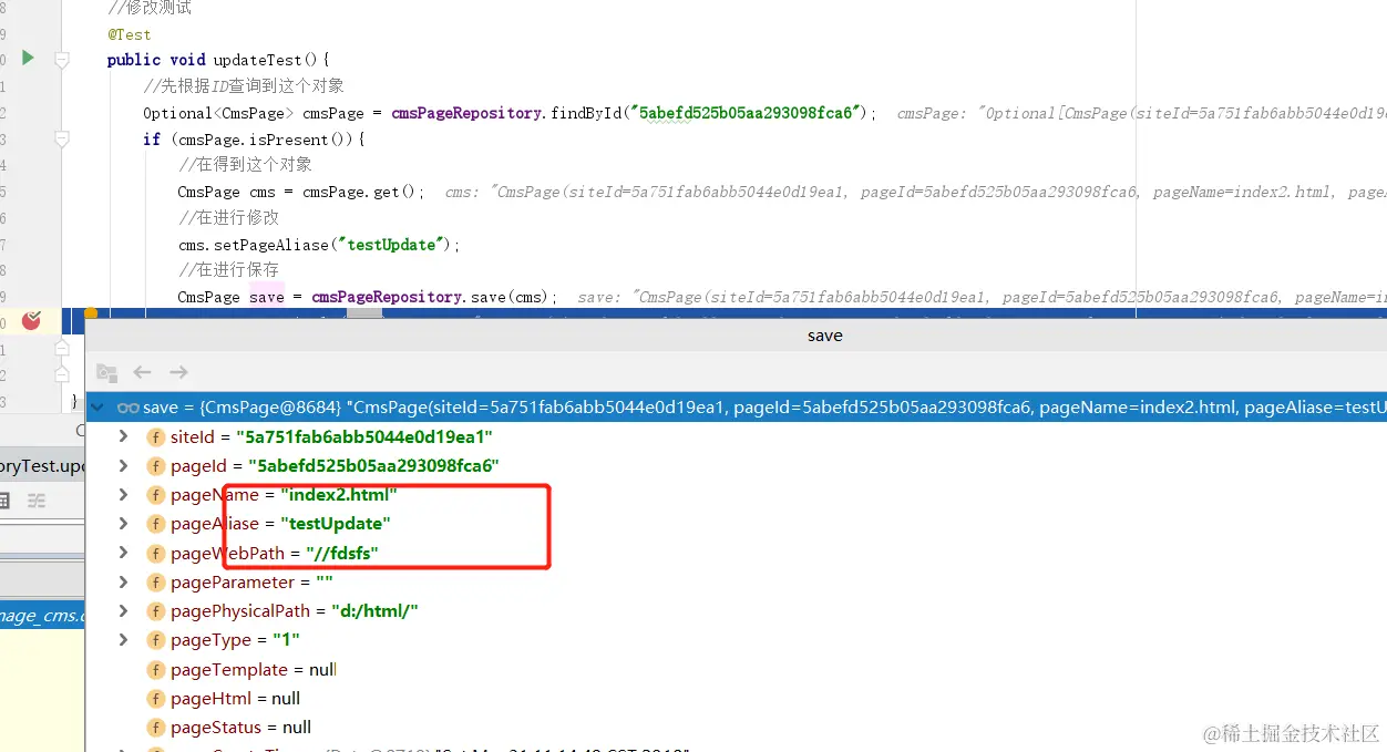 CmsPage cmsPage = cmsPageRepository.findByPageAliase("testUpdate");