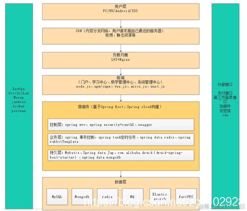 持久层:MySQL、MongoDB、Redis、ElasticSearch 数据访问层:使用Spring Data JPA 、Mybatis、Spring Data Mongodb等