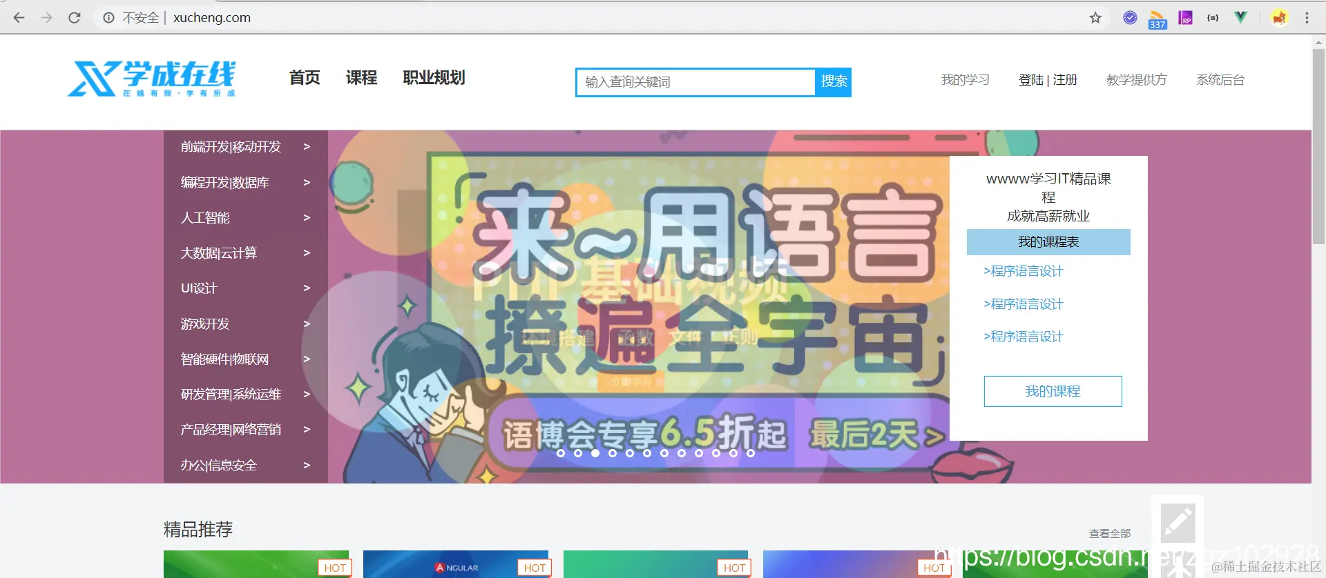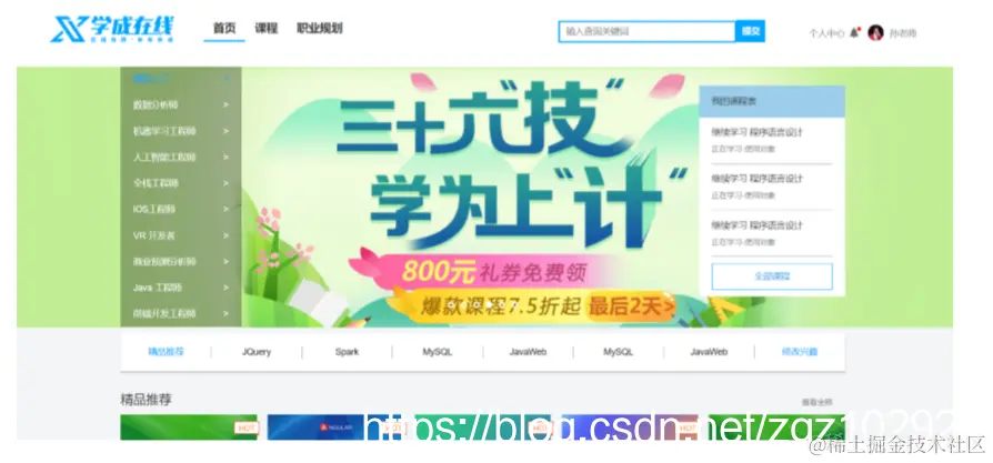 门户,是一个网站的入口,一般网站都有一个对外的门户,学成在线门户效果图如下