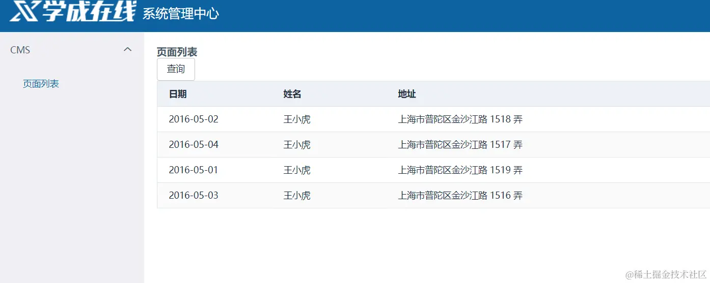 前端页面导入cms.js,调用js方法请求服务端页面查询接口。