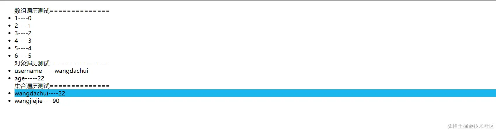 <li v-for="(item,index) in arrayList" :key="index">{{item}}----{{index}}</li>