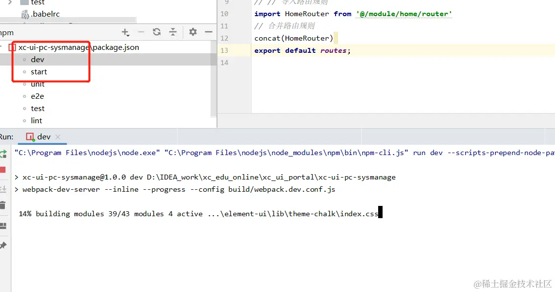 划分完文件结构之后开始执行固定的npm命令,为了方便打包来用,打包之后会又一个package.json在里面添加固定的热部署的命令