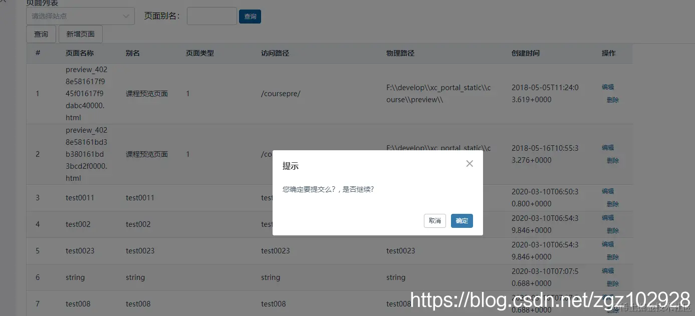 前端执行删除操作,前端得操作基本和编辑得操作一样,只要把ID获取到,直接发送请求到后台就可以直接删除了